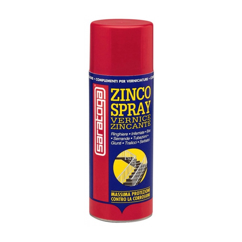 Zinco Spray Saratoga è una vernice zincante per galvanizzare a freddo. Crea un rivestimento metallico altamente resistente alla corrosione causata dagli agenti atmosferici più inquinanti, dall'acqua e dalla salsedine. E' indispensabile per serbatoi di impianti chimici, tralicci, opere di carpenteria, tubazioni, giunti saldati, pompe, inferriate, serrande e box. Solidifica rapidamente: 15-20 minuti per l'asciugatura completa della pellicola.